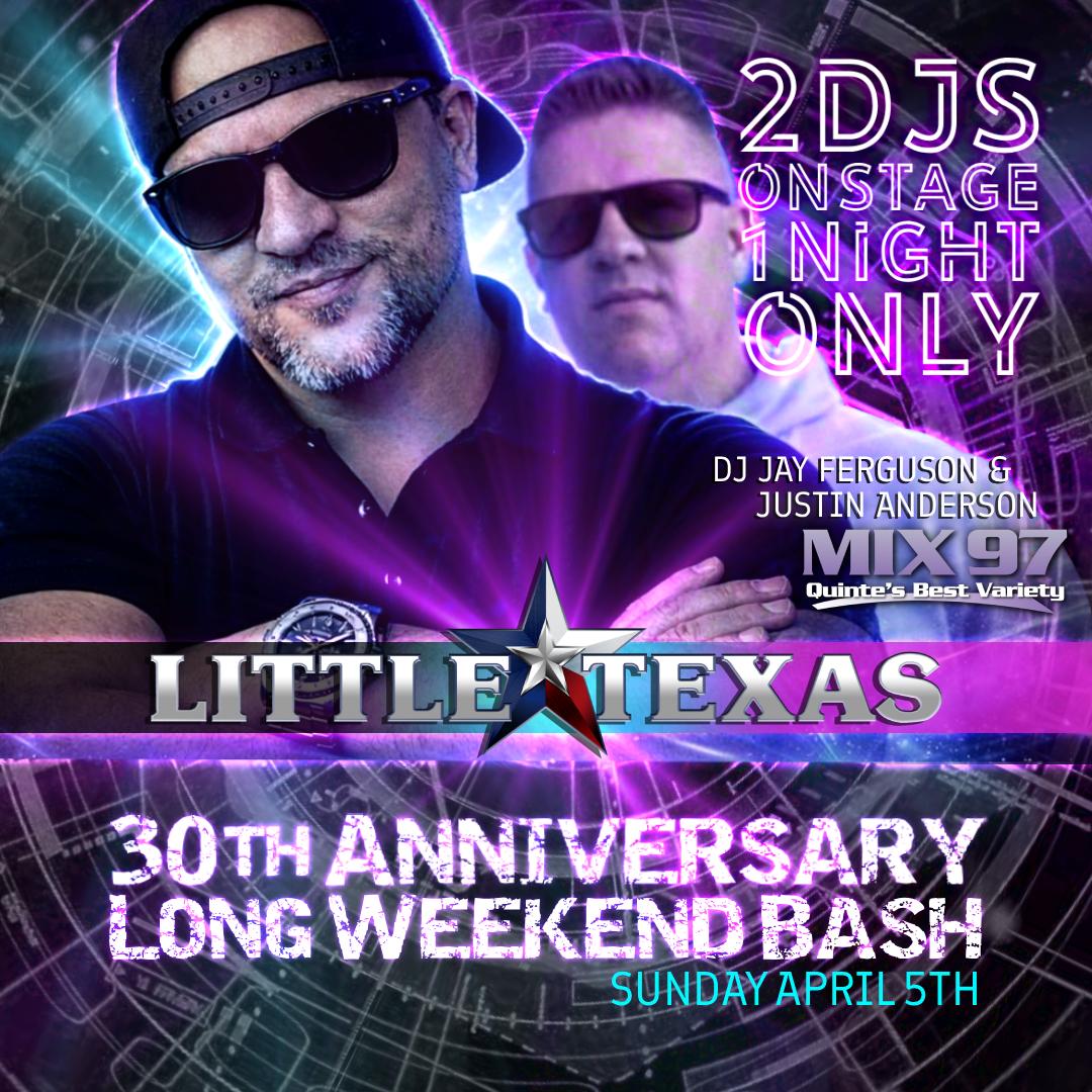 Our Long Weekend Anniversary Celebration Completes with a BANG as MIX97fm's JUSTIN ANDERSON Makes a Triumphant Return to the Stage with Belleville's Elite DJ Jay Ferguson, in what promises to be a Night to Remember!! ...