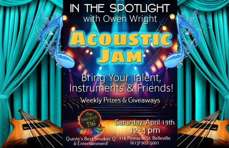 Join us at Smokin’ 116 Bistro on Saturday, April 19 from 12pm – 4pm for the Acoustic Jam hosted by the one and only Owen Wright! Bring your instruments, talent, and BEST vibes because we’re boosting the energy!