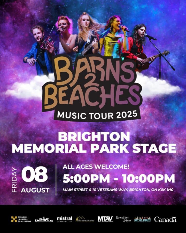 Brighton is proud to host the much-anticipated Barns2Beaches Music Tour on Friday, August 8, 2025, at Memorial Park, featuring unforgettable performances by Canada’s rising music stars. This free, family-friendly concert is a summer event you won’t want to miss!