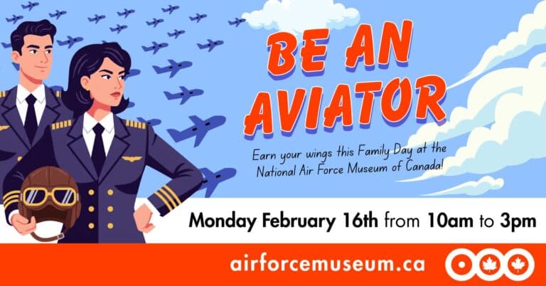The skies are calling! Do you have what it takes to fly, lead, and serve? On Family Day, young recruits and their families will march through the National Air Force Museum of Canada on a mission to earn their wings, tackling hands-on challenges inspired by the proud legacy of the Royal Canadian Air Force (RCAF). From past heroes to future aviators, discover what it takes to Be an Aviator.