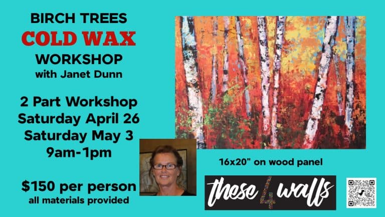Join artist Janet Dunn for a captivating two-part workshop where you’ll create vibrant birch tree landscapes in a cold wax technique on a wood panel. Under Janet’s expert guidance, you’ll explore the dynamic interplay of colour, texture, and contrast to bring your trees to life. Book early to avoid disappointment as this workshop has limited seating.