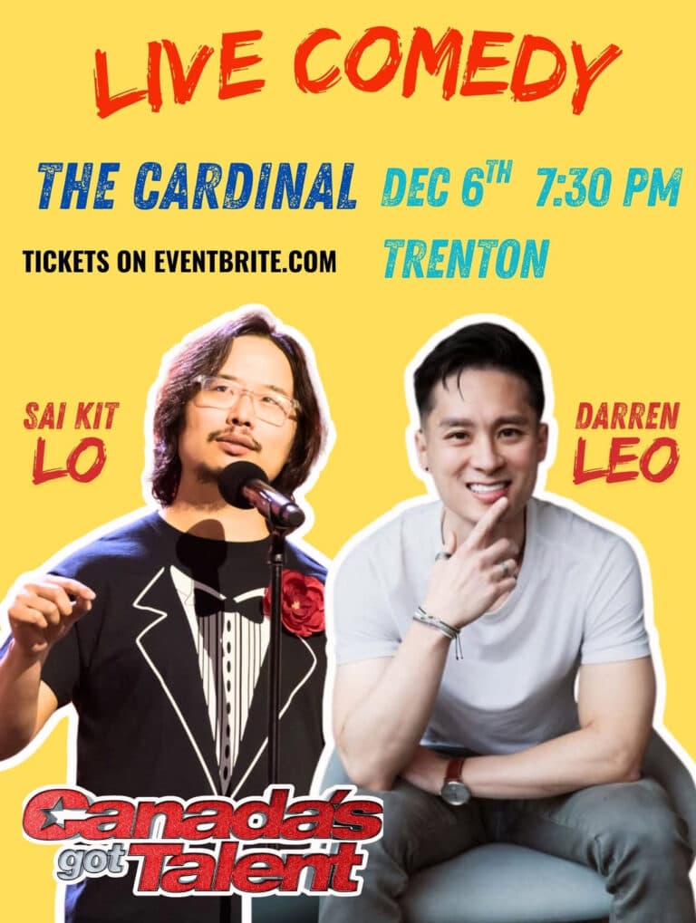 Canada’s Got Talent finalist Sai Kit Lo is returning to The Cardinal, bringing his razor-sharp wit back to Quinte West joined by the hysterically unfiltered Darren Leo, who specializes in the kind of jokes that make you laugh first and process later.