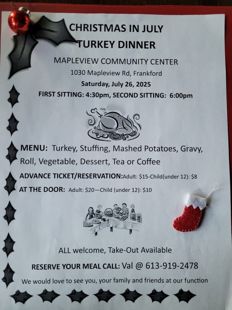 We are hosting a Christmas in July Turkey dinner on Saturday, July 26, 2025