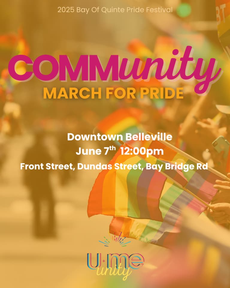 The CommUNITY March is Bay of Quinte Pride’s annual parade — a bold celebration of love, visibility, resistance, and radical joy.