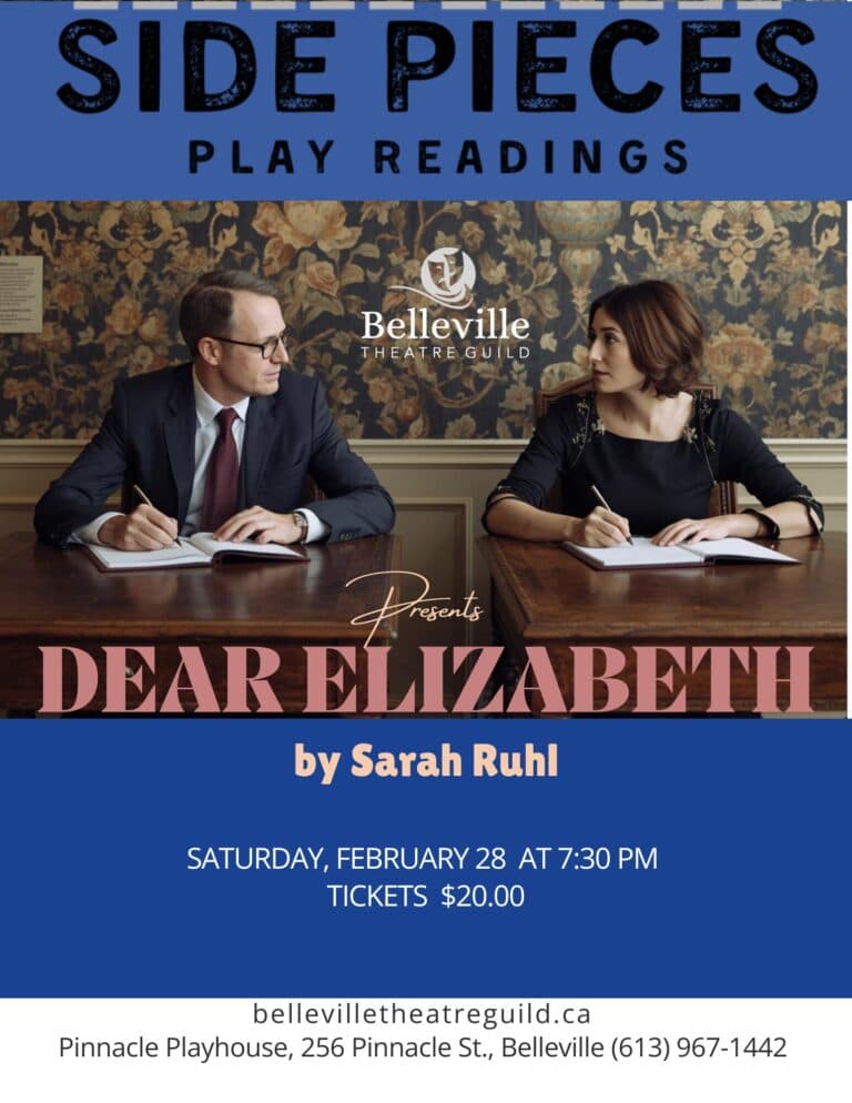 This is one play within our Side Pieces Play Reading Series. The Belleville Theatre Guild’s Side Pieces is a series of one-night play readings featuring a selection of critically acclaimed plays – currently running or having just completed runs in NYC, London and Toronto. This is a chance to enjoy a dynamic reading of a play that might not be feasible for a full run at the Pinnacle Playhouse, either due to production limitations or content that is not as mainstream as other Belleville Theatre Guild productions.