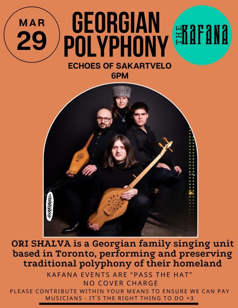 Ori Shalva is a Georgian family ensemble based in Toronto that sings the haunting visceral harmonies of Georgian polyphony, a UNESCO proclaimed intangible heritage of humanity.