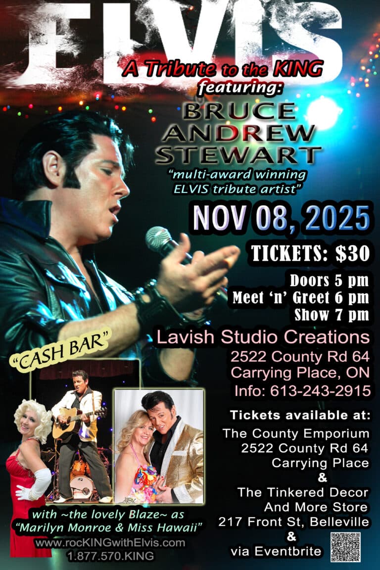 Get ready for “A Tribute to the KING” featuring the multi-award-winning Elvis tribute artist Bruce Andrew Stewart — with the lovely Blaze as Marilyn Monroe & Miss Hawaii!