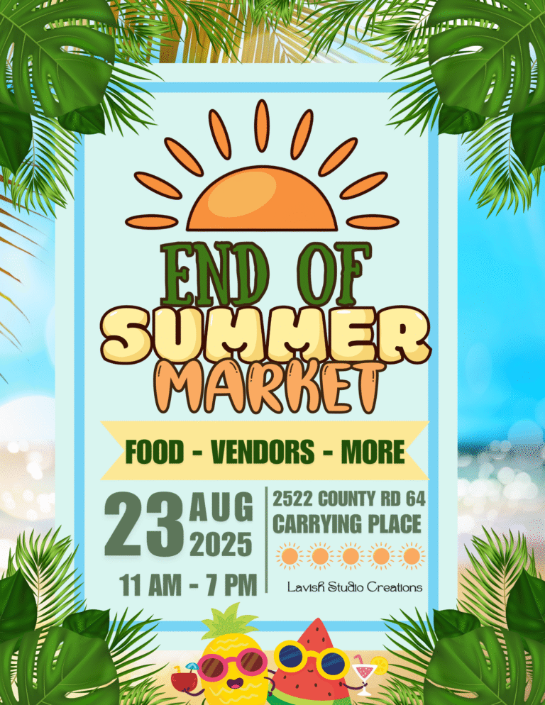 Join us on Saturday, August 23, 2025, from 11 AM – 7 PM at 2522 County Rd 64 in Carrying Place, Ontario, for a day full of shopping, food, and fun!