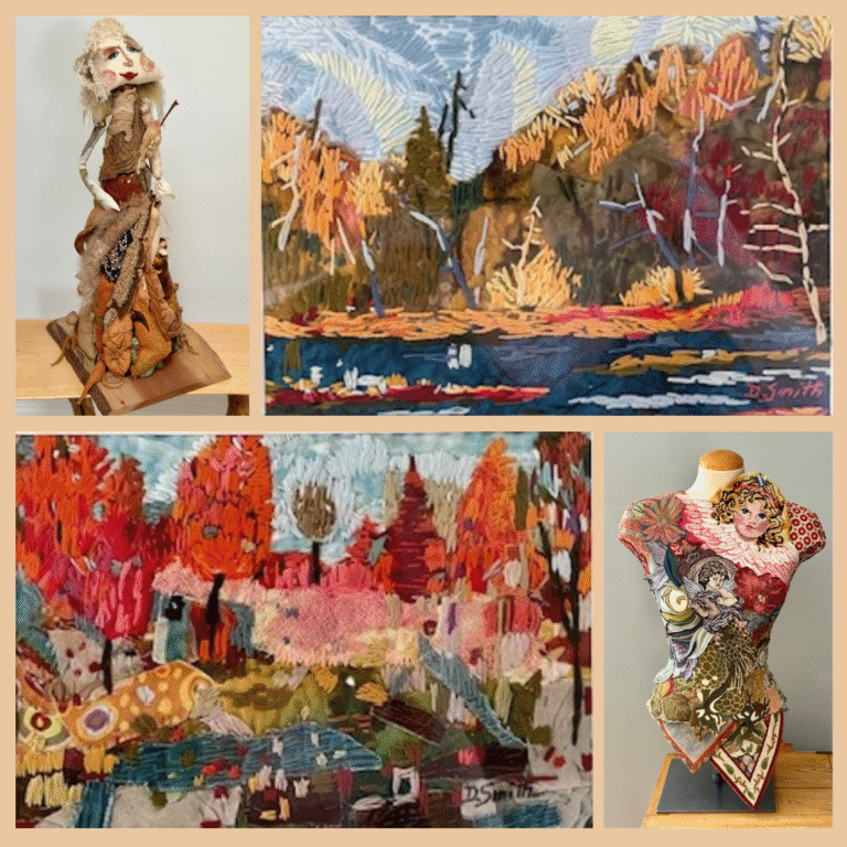 Join us at the Parrott Gallery for “Follow the Thread”, an information session with “SheScapes” artists Marta Smith and Debby Smith on Saturday, September 27 from 2:00 to 3:30 p.m. in Gallery 2. This session will be an exploration of fibre art techniques, tools and materials. Bring your questions and curiosity! This is a free event, all are welcome. The “SheScapes” exhibition is on display in Gallery 2 from September 6 until October 4, 2025.