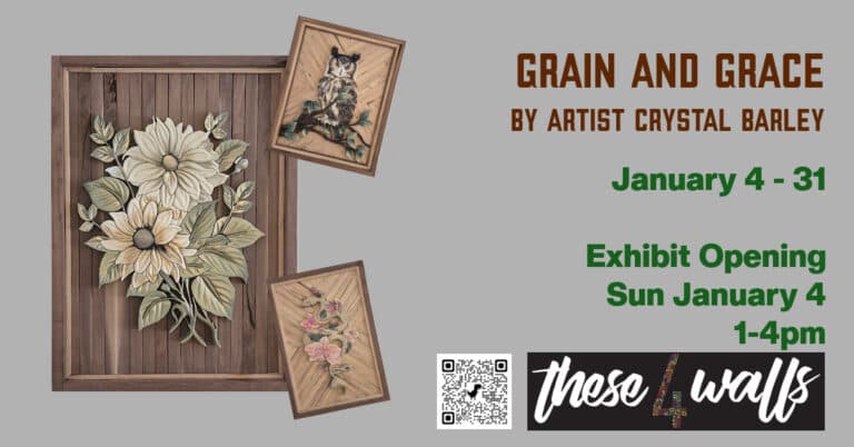 Join us for a creative & interesting exhibit by wood artist Crystal Barley. Exhibit opening Sunday, Jan 4 from 1-4 pm. This is a free event.