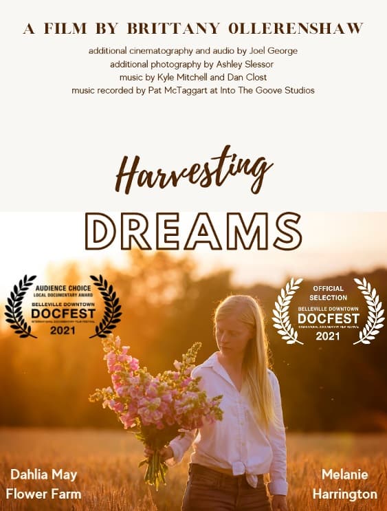Harvesting Dreams is an inspiring story about Melanie Harrington and her journey farming sustainably grown flowers at Dahlia May Flower Farm. The film won the 2021 Audience Choice Local Documentary Award at the 2021 Downtown Belleville DocFest.