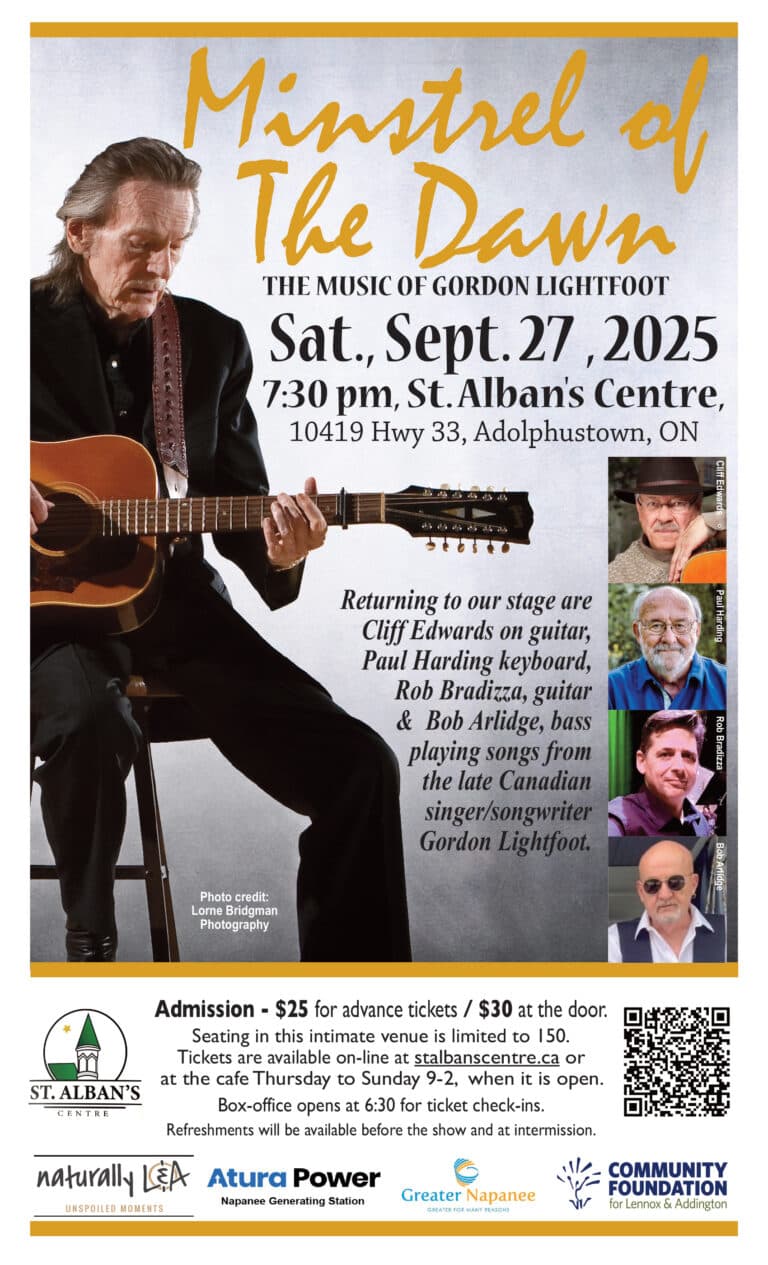 Join us at St. Alban’s Centre on Sat. Sept. 27 at 7:30pm to hear Minstrel of the Dawn live in concert. Tickets $25 in advance or $30 at the door.