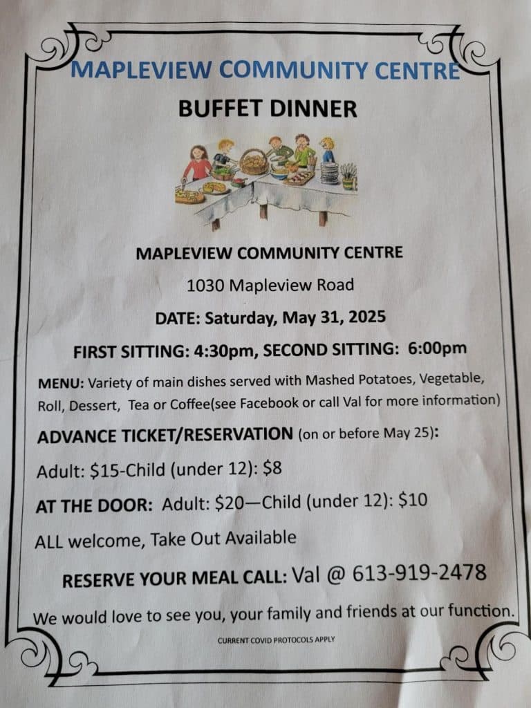 Advance ticket/Reservation on or before May 25: Adult: $15 and Child under 12: $8