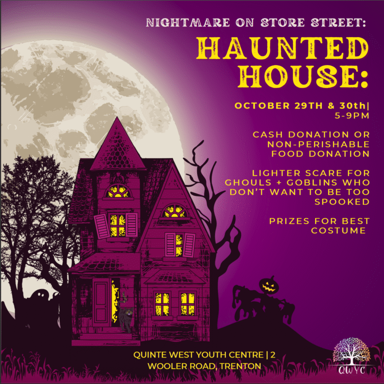 It’s that time of year! The Quinte West Youth Centre is once again transforming the entire building into a Haunted House — and our youth are waiting inside, ready to give you a scare!