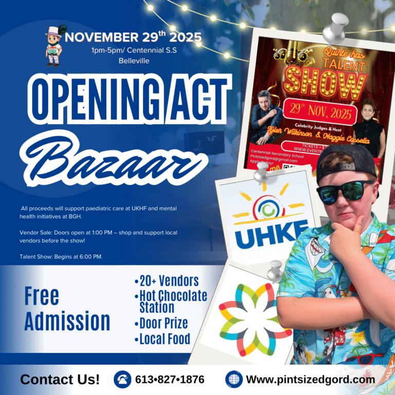 The fun doesn’t stop there — the bazaar leads directly into Quinte Has Talent (6–9 PM at Bizarre), an evening showcase of amazing local performers.
