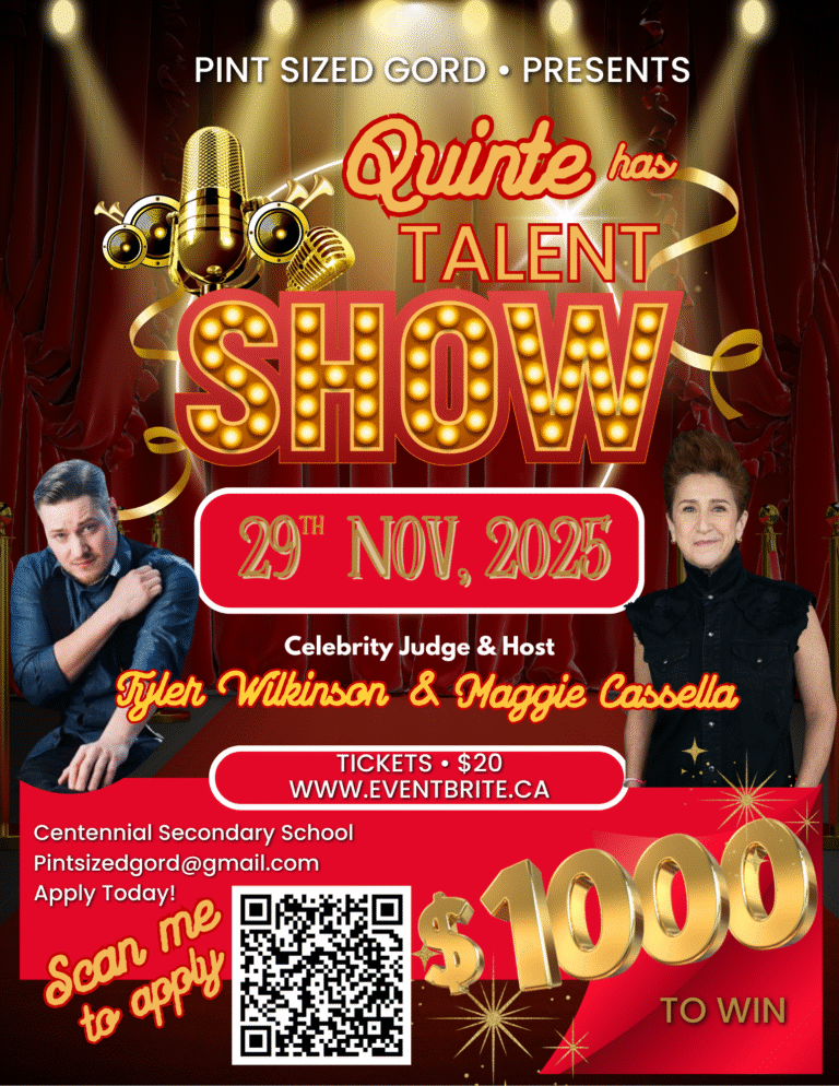 Bentley Davidson, also known as Pint Sized Gord is hosting Quinte Has Talent, a one-day, all-ages community talent show on Saturday, November 29th, doors open at 5 p.m. at Centennial Secondary School in Belleville.