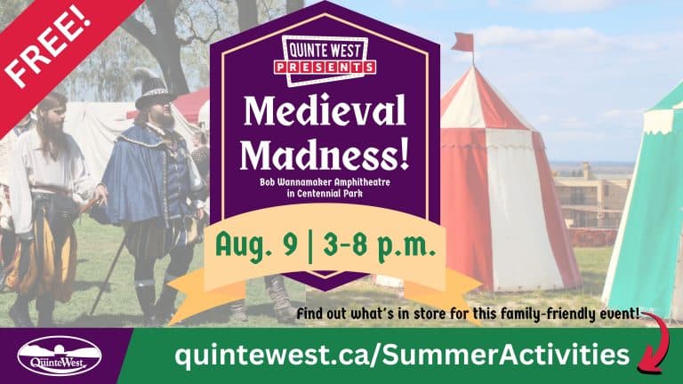 Join the City of Quinte West for Quinte West Presents series: Medieval Madness! On Saturday, Aug. 9, 2025, at the Bob Wannamaker Amphitheatre will transform into an experience you don’t want to miss.
