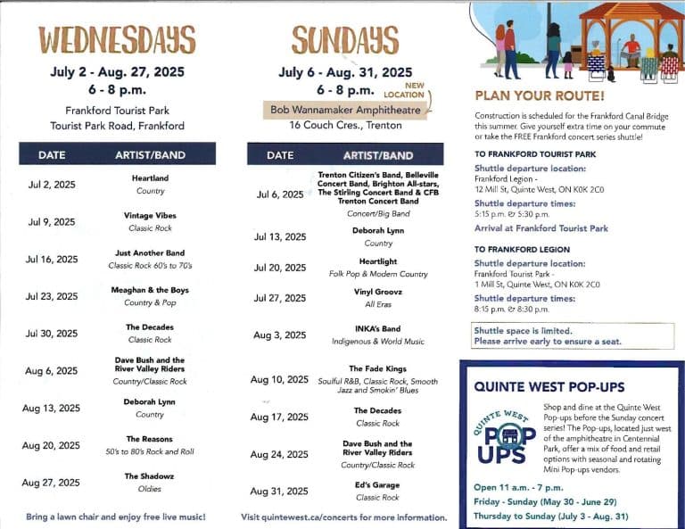 Bring a lawn chair or blanket. Please note concerts are weather permitting and subject to change without notice.