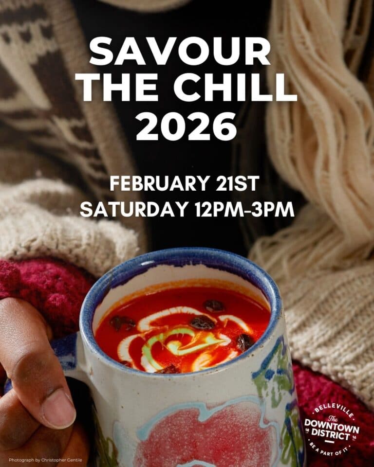 Brrrr! It’s that time of year again, time to Savour the Chill! The 22nd annual Savour the Chill will take place on Saturday, February 21st, 2026 in Downtown Belleville. The event kicks off at 12 PM and continues until the soup runs out! Soups are $3 each, served in a 6 oz cup. Bring your own spoon to reduce waste and bundle up because soup’s on no matter the weather!
