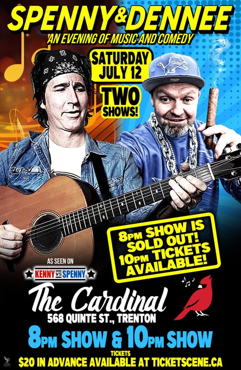 Get ready for a wild, laughter-packed night at The Cardinal with Spenny & Dennee, blending side-splitting comedy with live music magic!
