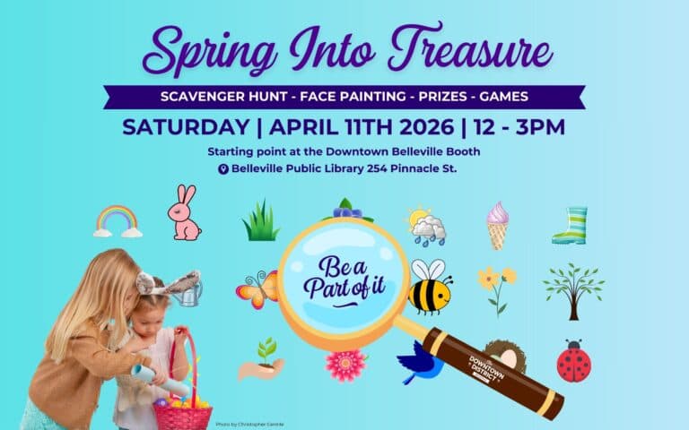 Gather some family and friends to experience the amazing Spring Into Treasure Scavenger Hunt! Happening in Downtown Belleville from 12 p.m. – 3 p.m. on Saturday, April 11, 2026. Grab your Bingo Card at the Downtown District Booth at the Belleville Public Library (254 Pinnacle St.), visit participating locations to collect stamps, and win prizes- while supplies last! Plus, get entered into a draw for the Grand Prizes. This event is for kids of all ages and is FREE to participate. Visit https://downtownbelleville.ca/events/spring-into-treasure/ or follow @downtownbelleville on socials to stay up to date!