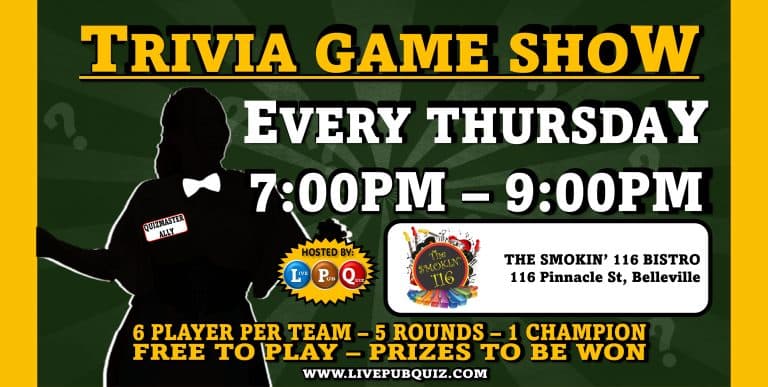 Live Pub Quiz Presents Trivia Game Show at The Smokin’ 116 Bistro Belleville.