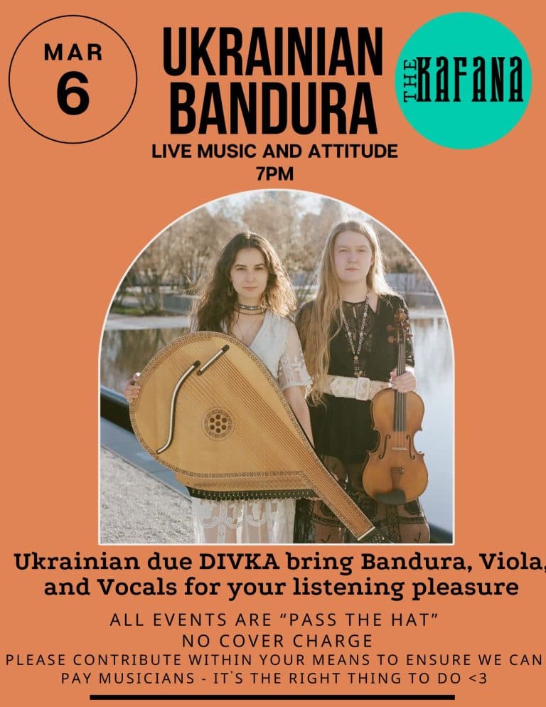Traditional Ukrainian folk songs, presented with attitude and flare by the women of Divka Band on bandura, viola, and vocals.