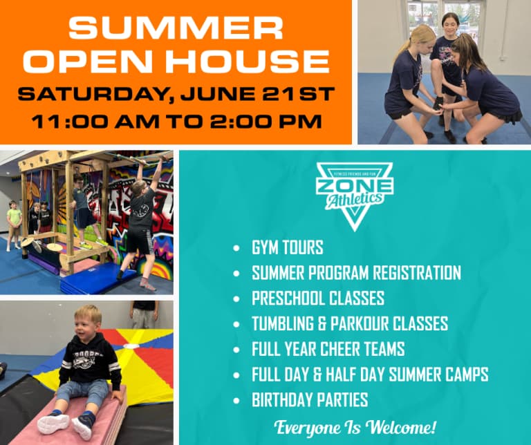 Join us at Zone Athletics (1989 Old Highway 2 in Belleville) on Saturday, June 21st from 11:00 a.m. to 2:00 p.m. for our Summer Programs Open House!