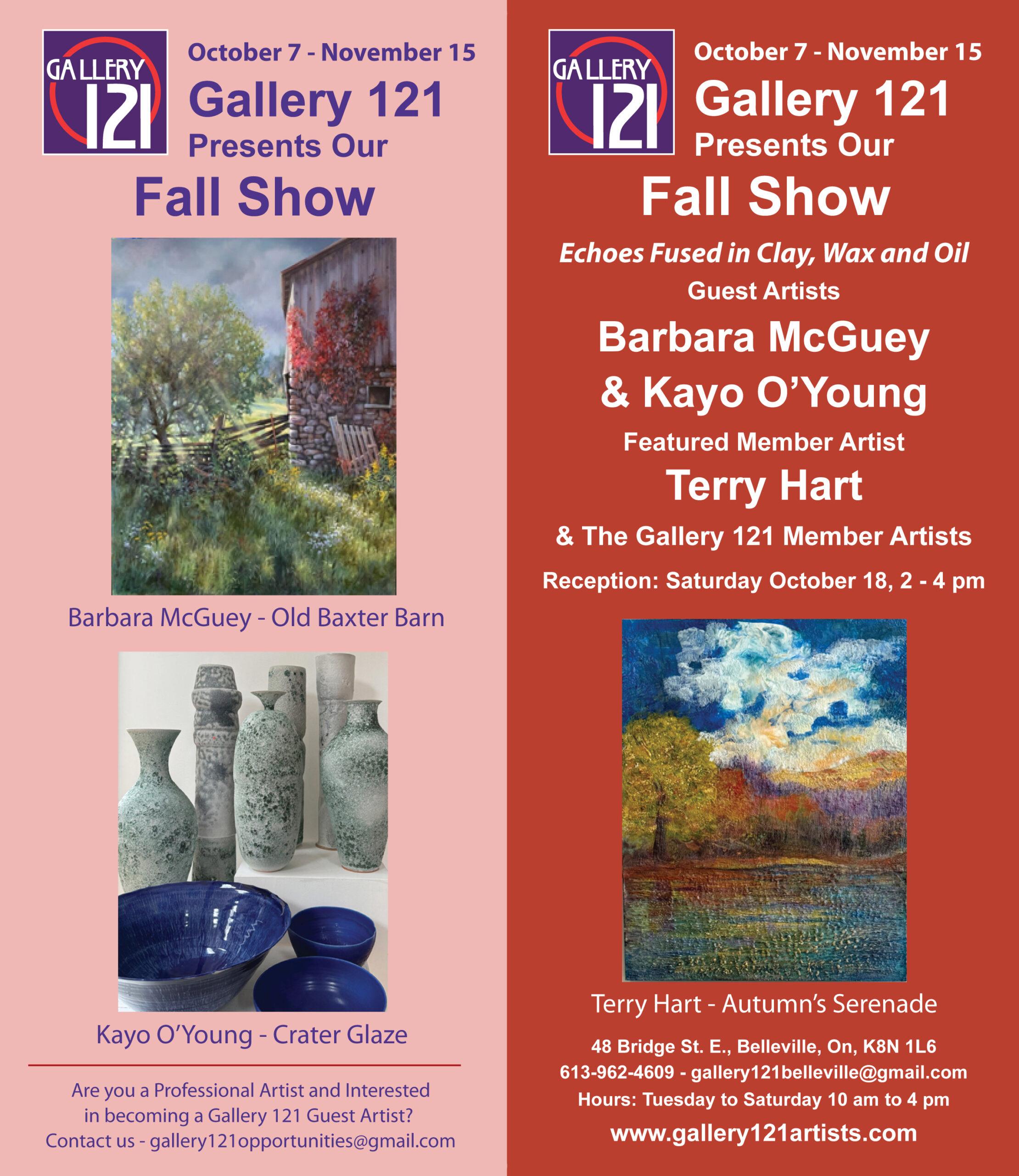 FALL SHOW – GALLERY 121 – OCTOBER 7TH – NOV. 15TH, 2025 RECEPTION SATURDAY OCT. 18TH, 2025 The members of Gallery 121 are excited to show of their new works of art alongside those of ...