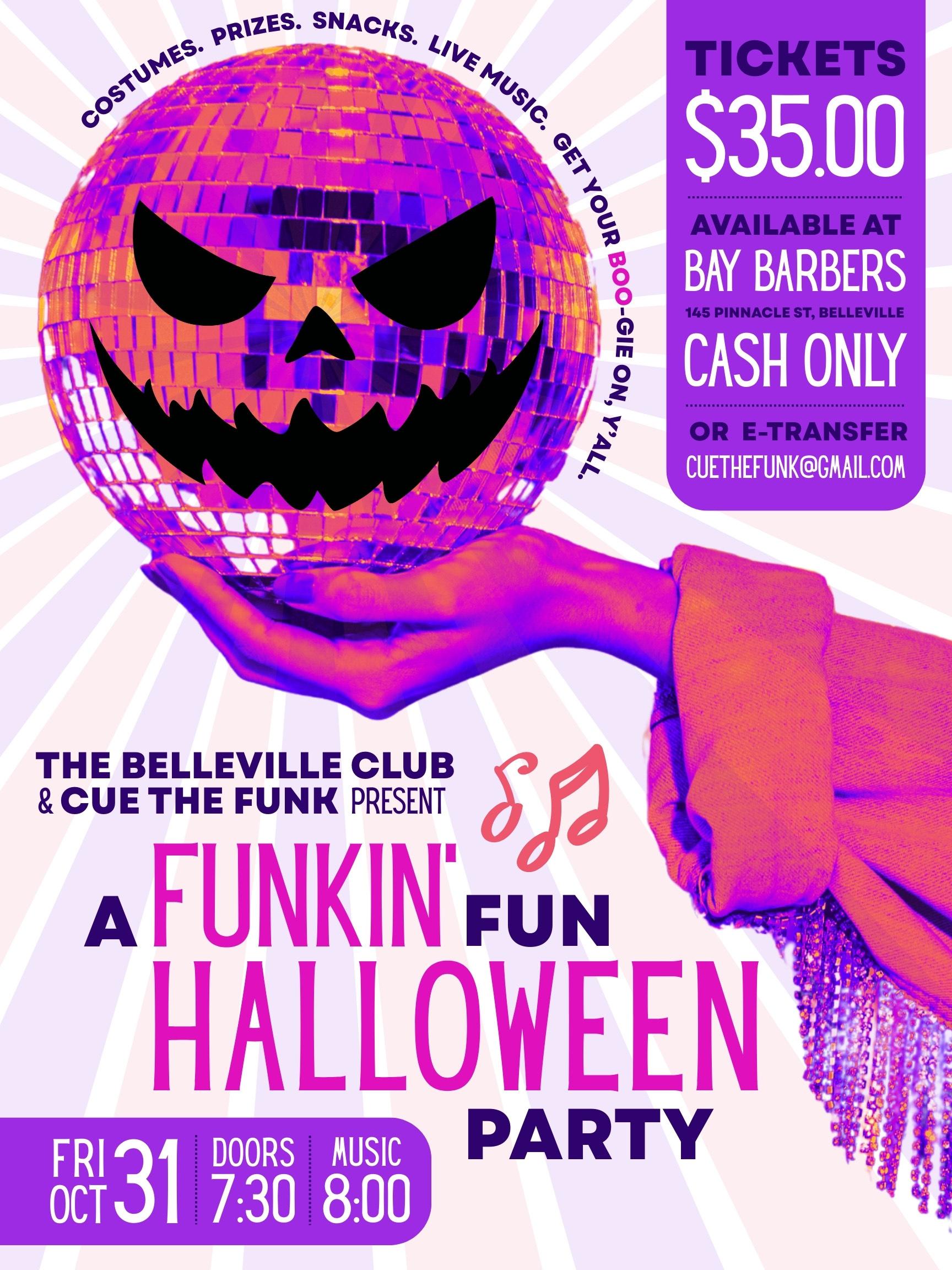 Cue The Funk is thrilled to announce they will be at the Belleville Club on Friday, October 31st for a Funkin' Fun Halloween Party!! Doors open at 7:30 and their costumed selves take the stage ...