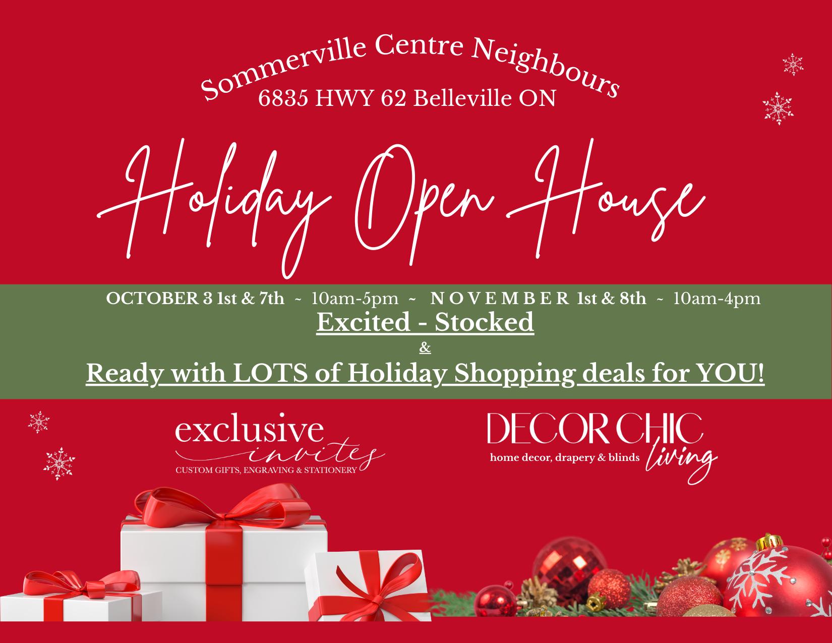 Get Holiday Ready with us: Exclusive Invites and DecorChic Living! WHEN: Friday October 31st, - 10am - 5pm Saturday November 1st - 10am - 4pm Friday November 7th, - 10am - 5pm Saturday November 8th ...