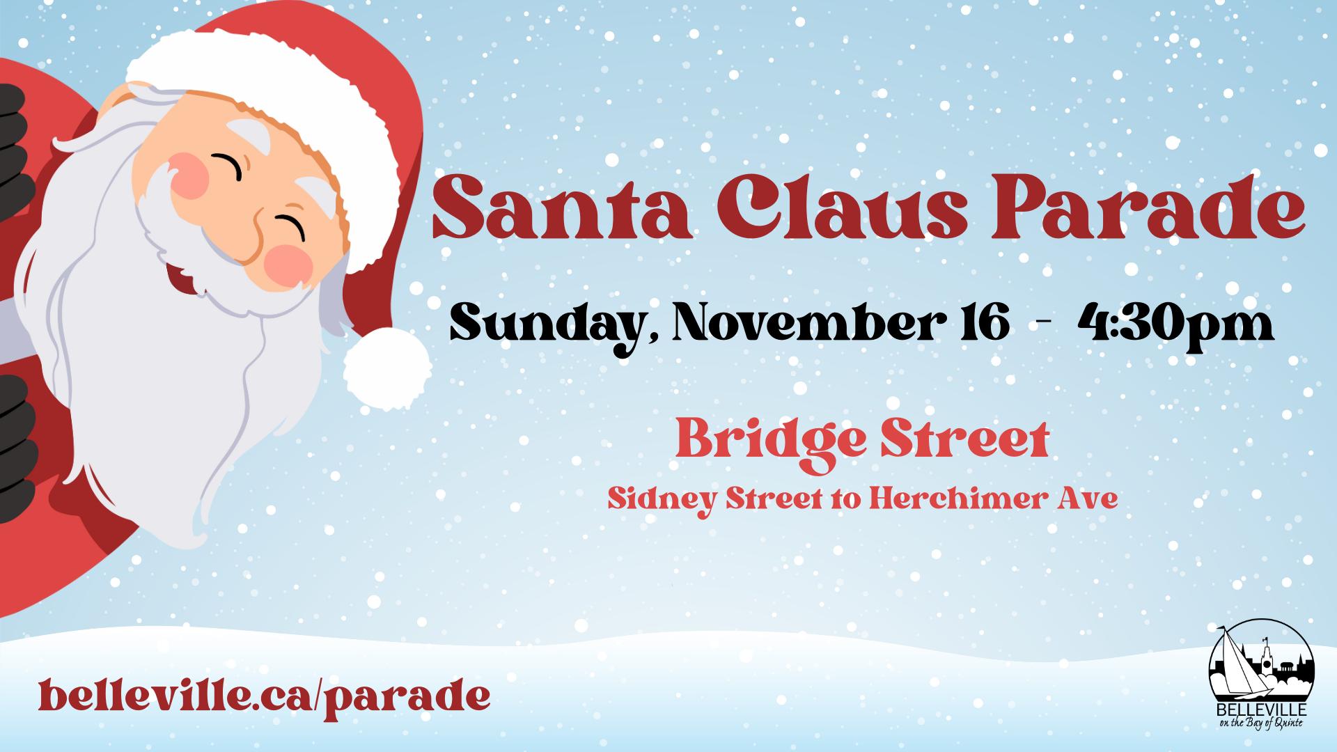 The Belleville Santa Claus Parade is back on Sunday, Nov. 16! The parade will begin at Bridge Street West and Sidney Street at 4:30 p.m. and travel down Bridge Street through downtown Belleville before ending ...