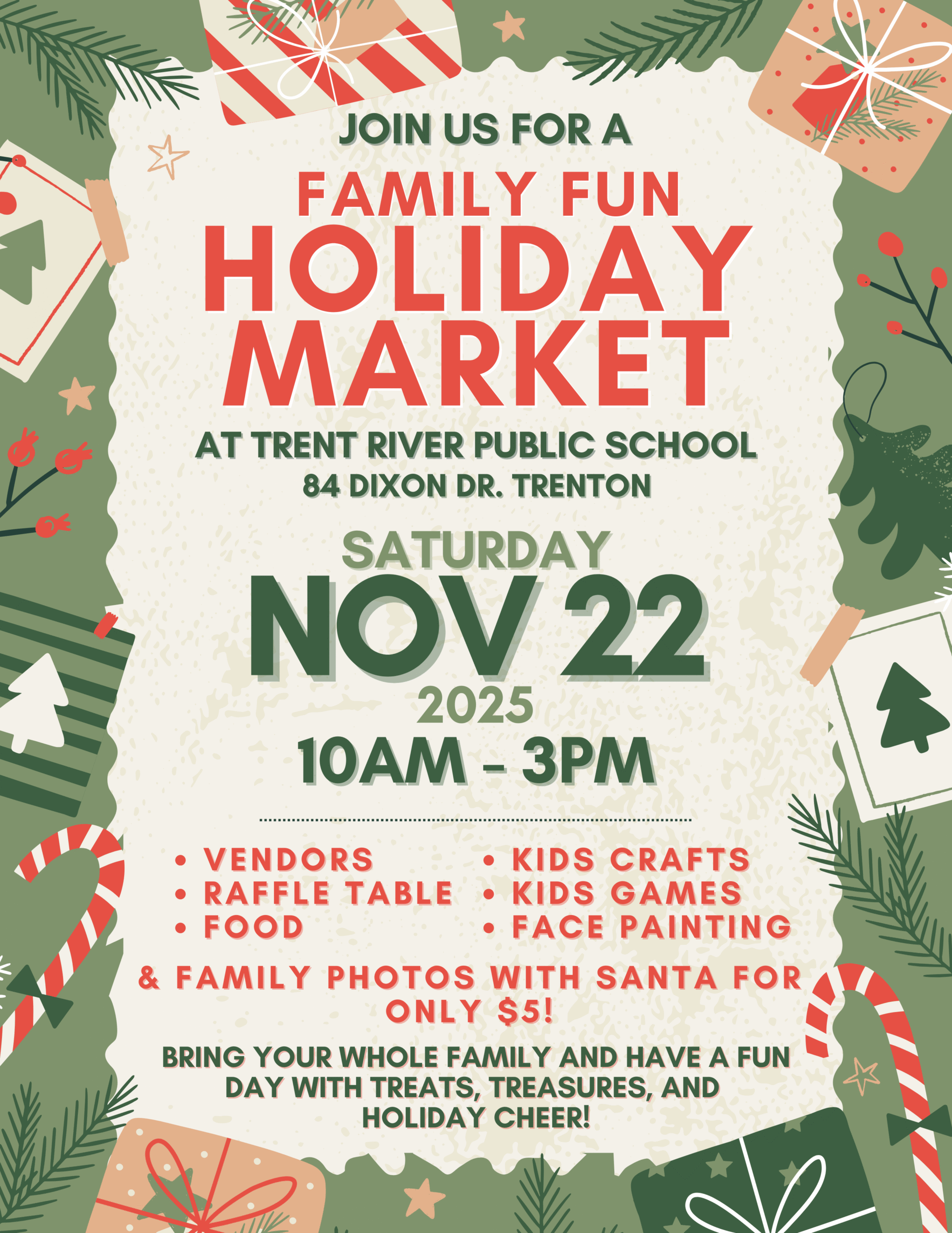 FREE ENTRY Join us on Saturday, November 22, 2025, from 10 AM – 3 PM at Trent River Public School Gym for a festive family fun day full of holiday cheer! Shop Local Vendors – ...