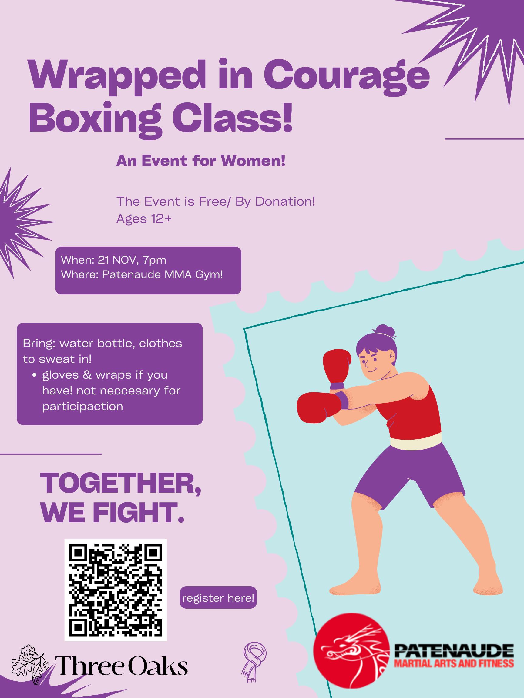 Fundraising Women ONLY - Kickboxing class for ages 12 and up. - By Donation 100% of all donations will go to the Three Oaks Foundation to aid in the support of women and their children ...