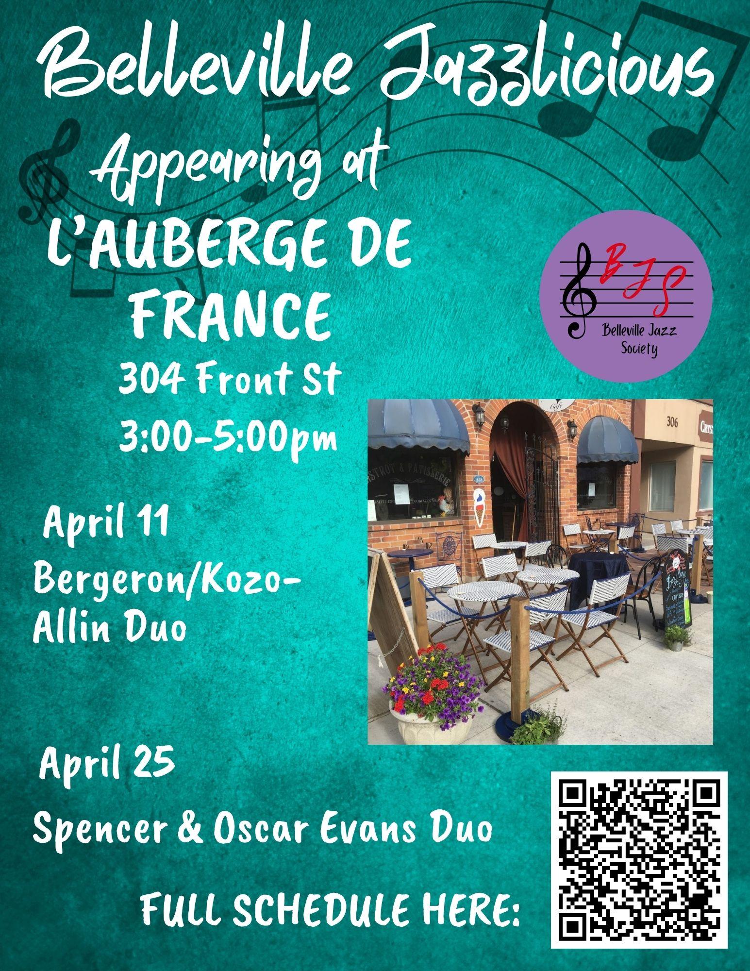 Join us at L'Auberge de France for the Spencer and Oscar Evans duo playing authentic European style jazz!