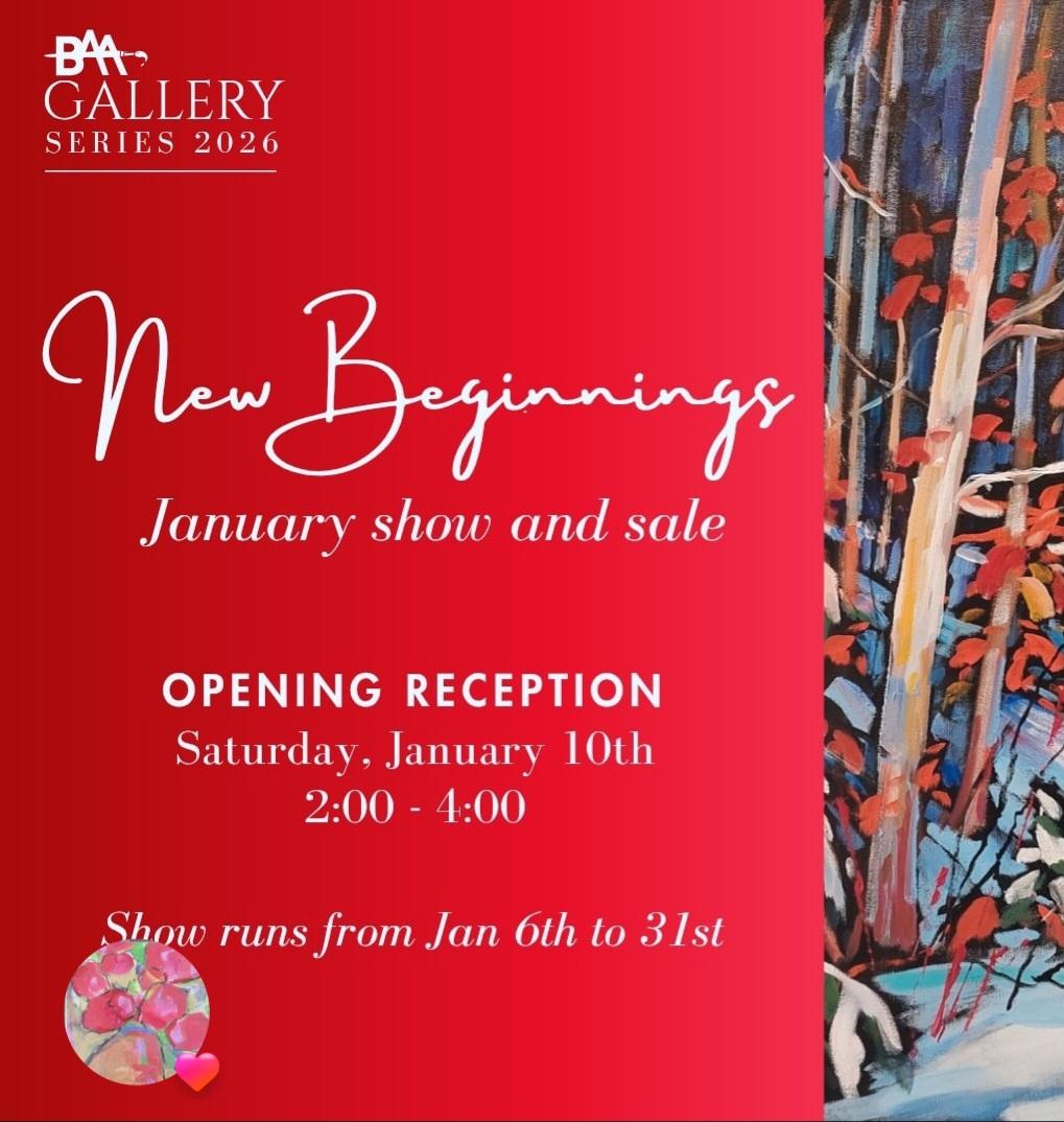 New Beginnings Opening Reception at the Belleville Art Association Saturday January 10th 2 pm to 4 pm Show runs from Jan 6th to Jan 31st The gallery is open Tuesday to Saturday, 10 am to ...