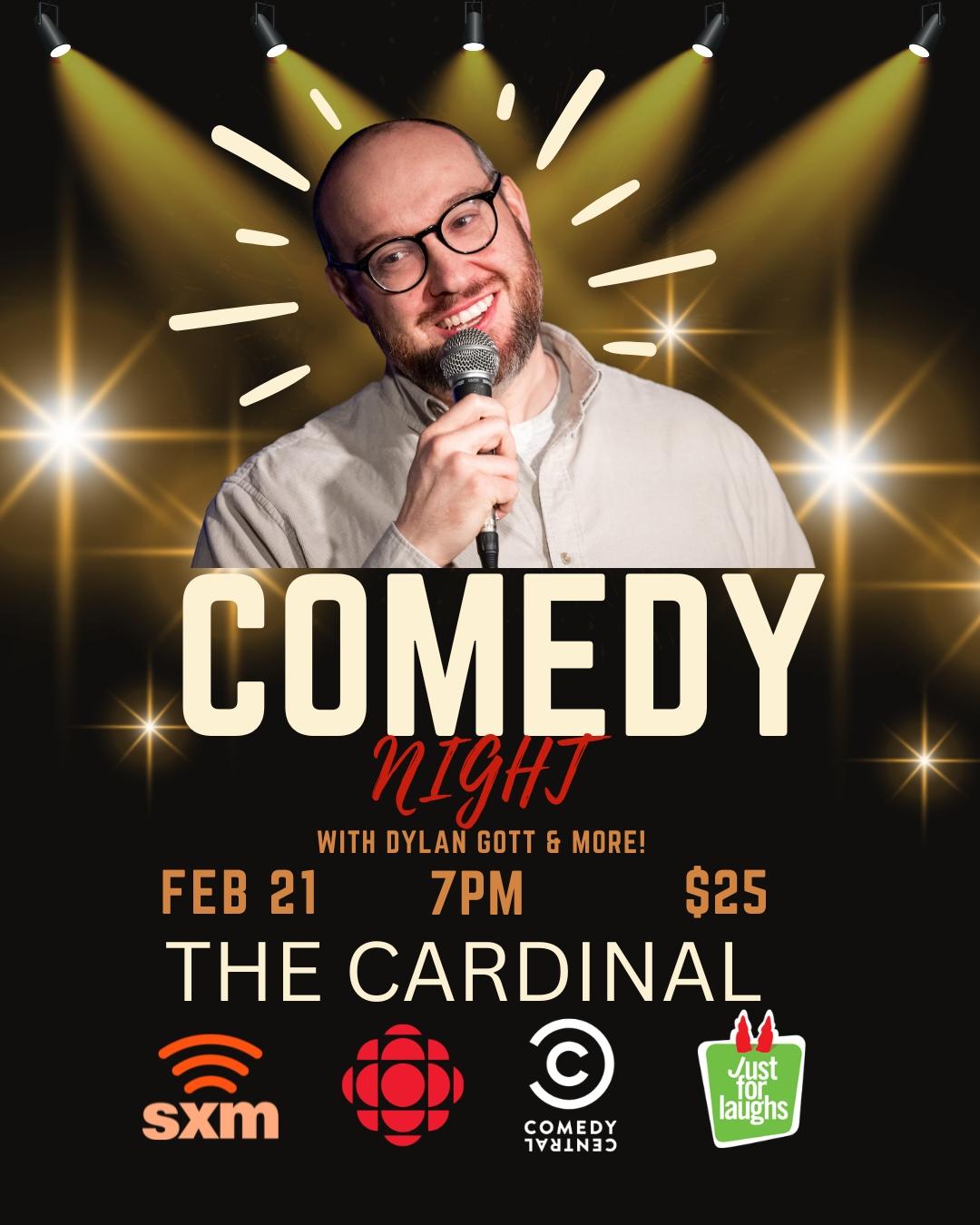 Come see Dylan Gott and other hilarious comedians from Just For Laughs, CBC, Comedy Central and much more! February 21st at 7:00pm, it's Big Funny Comedy at THE CARDINAL! This show features one of Canada's ...