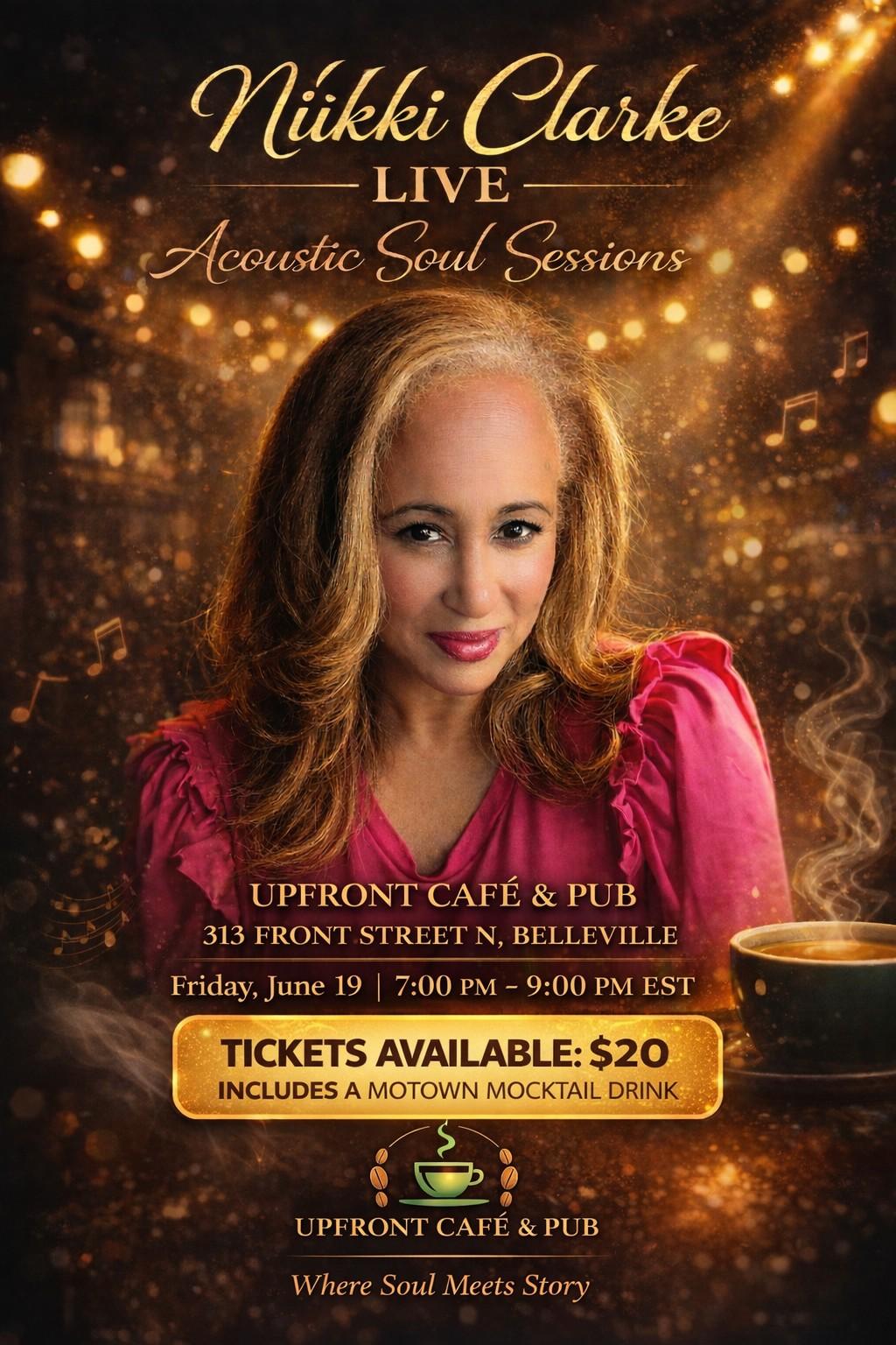 Nikki Clarke performs soul songs from the 60s to 80s from Etta James to Donna Summer at Upfront Cafe, June 19 from 7 pm to 9 pm. Tickets $20 includes entry fee and one Motown Mocktail drink