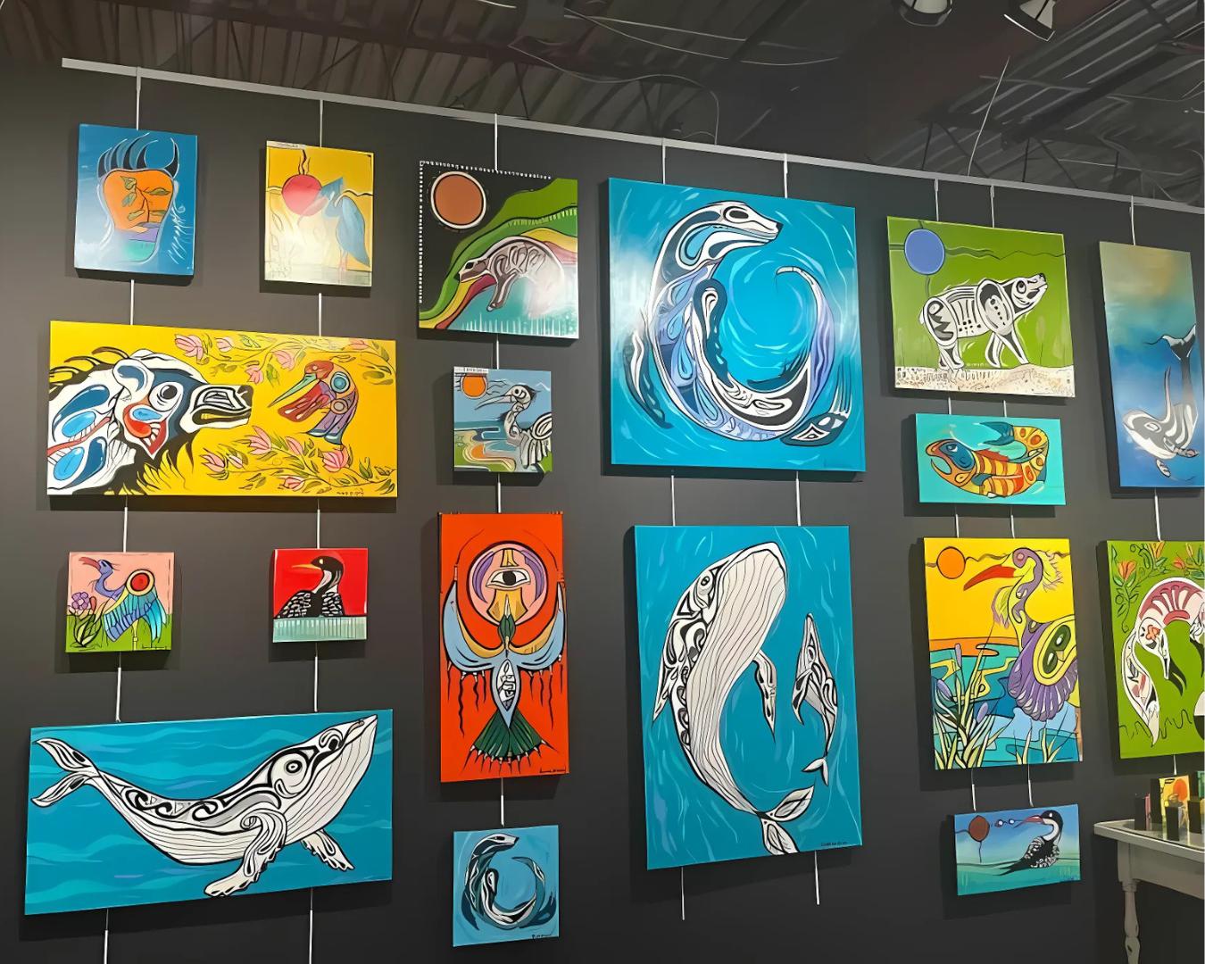 Renowned for her vibrant use of colour and her depictions of animals and trees, Angela’s creations serve as a living narrative of her journey to connect with Spirit and reclaim her Indigenous roots.